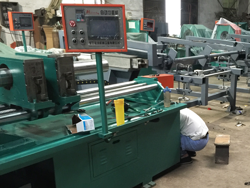 4、送料定尺用精密滾珠絲桿和導程用圓軌均配有自動潤滑油泵,使設備運行更流暢,并可避免精密滾珠絲桿過早磨損影響定尺精度。